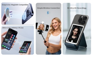White 4-Inch Magnetic Monitor Screen for iPhone Accessory Plastic Wireless Remote Control for Vlog Selfie and Live Streaming