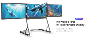 Save up to18.2%Save up to $100.00Only$449.00 $449.00 – $749.00Price range: $449.00 through $749.00Portable Design | Portrait Mode | Touchscreen | 14 & 15.6" Screens | Max. 2K QHD | 360° Foldable- Portable dual 14/15.6 inches stacked displays, triple monitors for the laptop with one Type C cable connected; It can be setup to triple stacked displays for the laptop in limited space with a stand; and you can setup the the portrait display orientation in the computer with the side by side vertical screens.